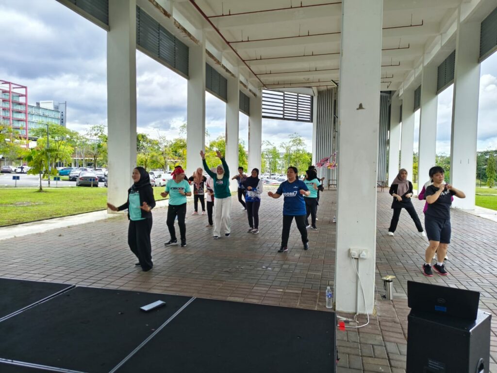 Organised by Dr Leha Saliman, Dr Nor Hanim Awang @ Mohd Noor, and Madam Rowena Abdullah from the Faculty of Social Sciences and Humanities, the programme featured the expertise of experienced aerobics instructor Mr. Sukiman bin Adenan, supported by a team of assistant instructors.