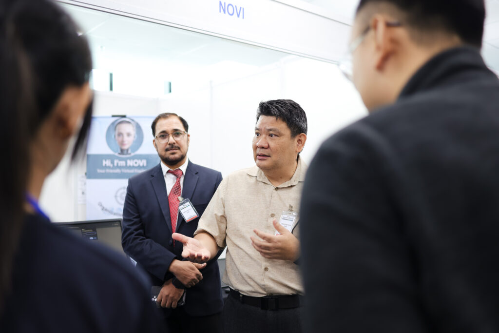 Beyond the keynote, Professor Dr Teh joined an engaging panel discussion alongside industry leaders, sharing perspectives on the future of AI and its role in building sustainable, technology-driven growth. UNIMAS representatives also participated in the exhibition booths, showcasing the university’s innovative projects and solutions, further enhancing academia-industry engagement.