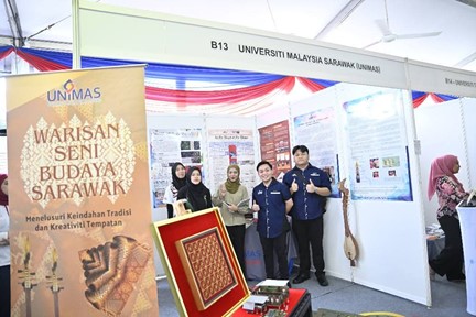 Gerai pameran UNIMAS mencuri tumpuan pengunjung dengan keunikan seni tenunan Sarawak seperti songket dan kain keringkam, model rumah Melayu tradisional, serta alat muzik tradisional seperti Gambus Lebor. Setiap hasil seni yang dipamerkan bukan sekadar memperlihatkan keindahan estetik, tetapi turut menzahirkan nilai komuniti dan identiti tempatan yang menjadi teras kepada pendidikan warisan di UNIMAS.
