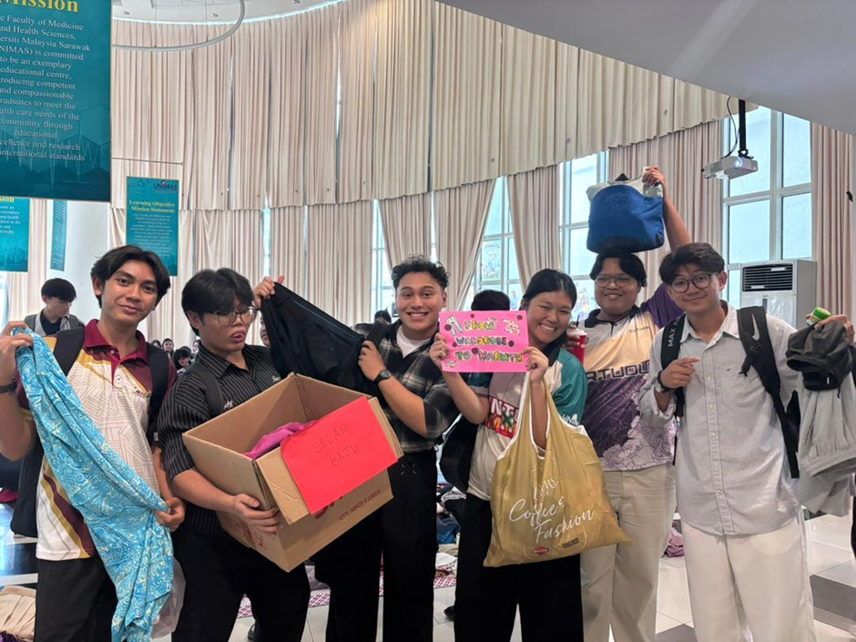 Kota Samarahan, 10 Disember 2025 — Atrium Fakulti Perubatan dan Sains Kesihatan (FPSK), UNIMAS dipenuhi pelajar dan komuniti kampus melalui program kebajikan From Wardrobe to Warmth, iaitu inisiatif pemberian barangan preloved secara percuma.