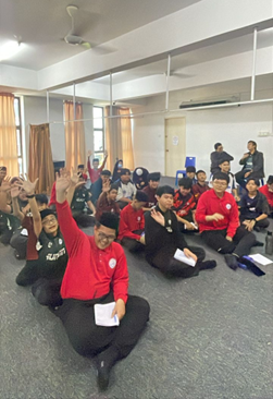 Group-based activities symbolised life’s recurring challenges, teaching perseverance, determination, and trust in overcoming obstacles. Activities involving unexpected challenges, represented through thrown paper balls, further fostered resilience and adaptability among students.