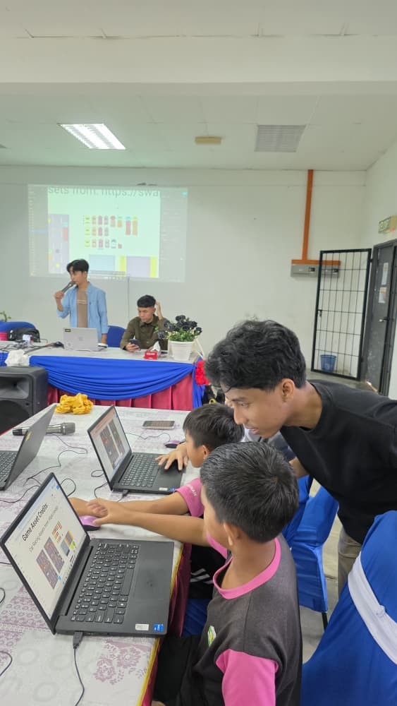 Guided by the visiting students from Politeknik Negeri Padang, the pupils designed the user interface (UI) of a simple highway vehicle-dodging game prototype.