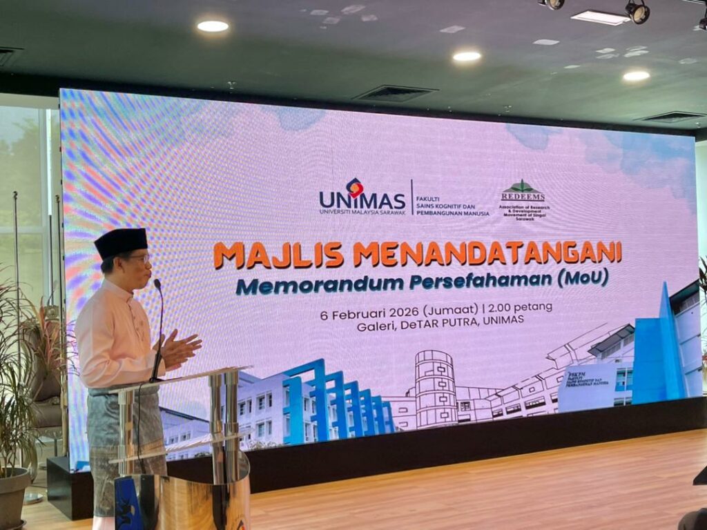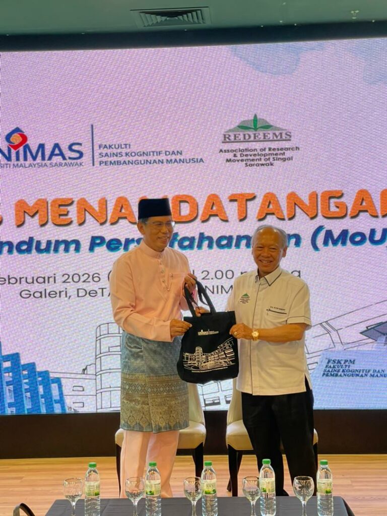Universiti Malaysia Sarawak (UNIMAS) has strengthened its commitment to community-driven development through the signing of a Memorandum of Understanding (MoU) with the Association of Research and Development Movement of Singai Sarawak (REDEEMS). The ceremony was held on 6 February 2026 at The Gallery, DeTAR Putra, UNIMAS, and was officiated by the Vice-Chancellor, Professor Dr Ahmad Hata Rasit. Also present was the Deputy Vice-Chancellor (Research and Innovation), Professor Ir Dr Siti Noor Linda Taib, underscoring the University’s strong focus on research and innovation in community engagement.