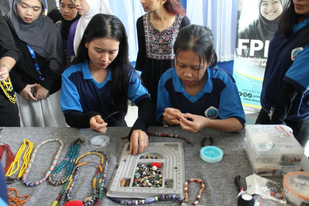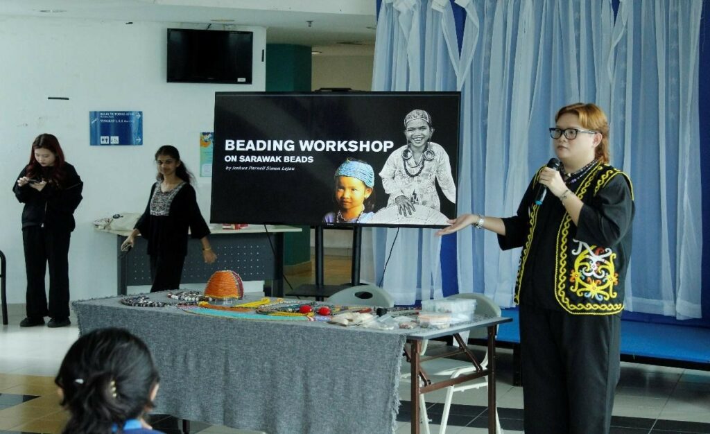 Besides that, the program provides a deep dive into the heritage of Sarawak, offering hands-on experiences that turn history into a living lesson. Starting off with the workshop on Sarawak Beads by beads enthusiast, Mr. Joshua Parnell Simon Lejau, a year 4 English for Global Communication student, where students learn about the history of Sarawak beads from China, India and Europe. At the same time, the participants learned the role of these beads as generational heirlooms that symbolize status and history. The participants also engage with culinary traditions through hands-on Sarawak Laksa demonstrations by Ms. Jennifer Sharon Anak Edwin — year 3 English for Global Communication student. Back in 1930’s a Teochew immigrant from China invented the Sarawak version of Laksa which had become the local favourites since then and today, it is considered a must try dish for every tourist who plans to visit Sarawak.