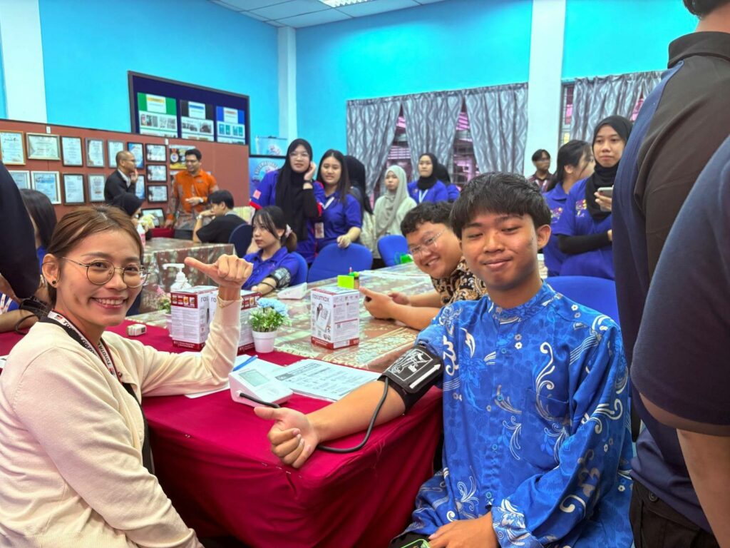 Supporting the event, a team from the Nursing Department — Mdm. Aidawati Nyowib, Mdm. Siti Hajar Marsidi, Mdm. Sumastika Mos, Mdm. Azizah Kassim, Mdm. Dayang Khaironie Awang Omar, and Mdm. Ho Lee Yen — conducted health screenings including blood pressure, blood glucose, and BMI checks, while providing health promotion and advice to participants.