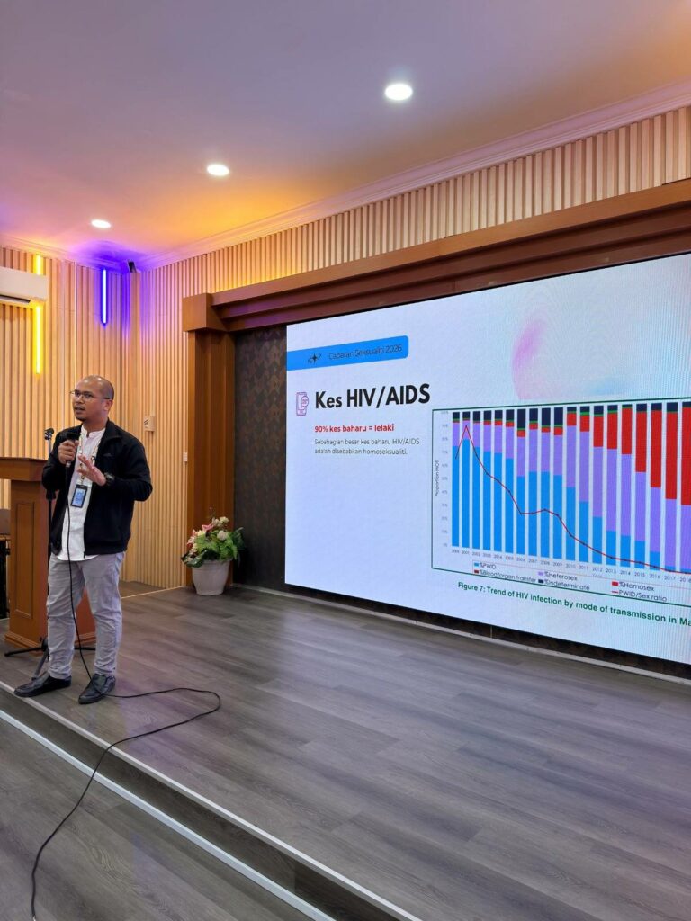 The talk was delivered by Dr. Mohammed Rasheedan bin Ellin from UNIMAS, who highlighted current trends in HIV infection, key at-risk populations, and the potential consequences of early pregnancies and homosexual behavior among students.